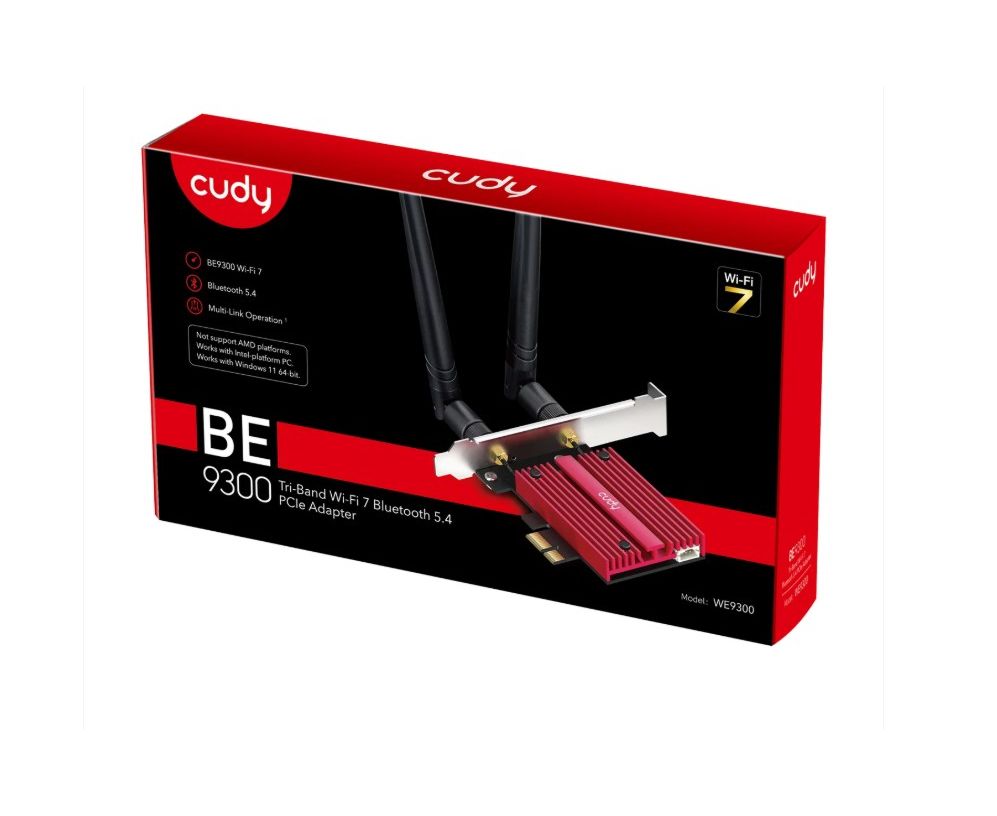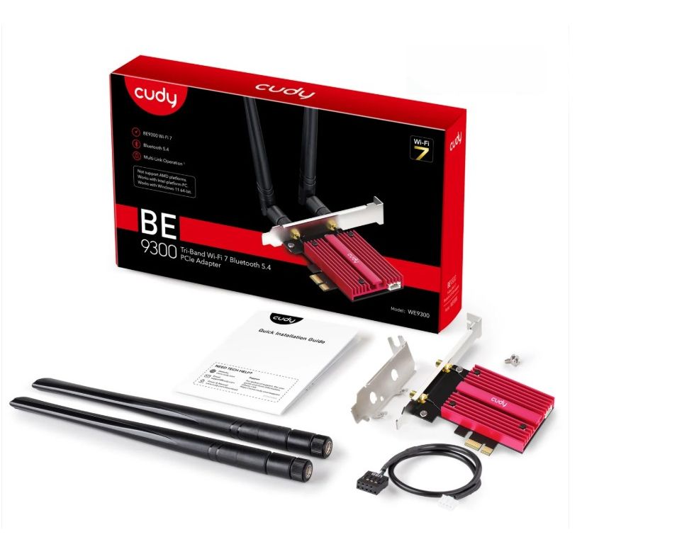Адаптер Cudy WE9300 PCI-E с поддержкой Wi-Fi 7 BE9300 и Bluetooth 5.4
