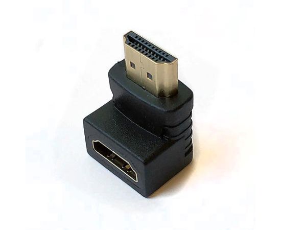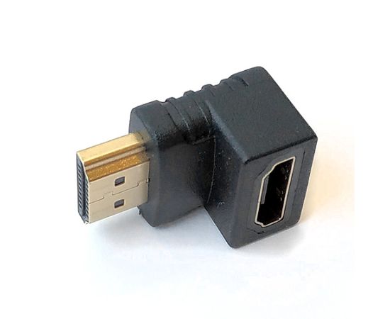 Адаптер с разъёмами HDMI AM-AF. Разъёмы расположены относительно друг друга под углом 90° вниз. Позолоченные контакты, ПВХ оболочка, цвет черный