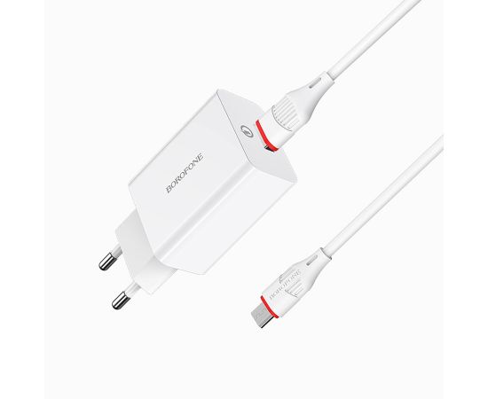 Адаптер Сетевой с кабелем Borofone BA21A Long QC3.0 USB 3A/18W (USB/Micro USB) (white) (124191)