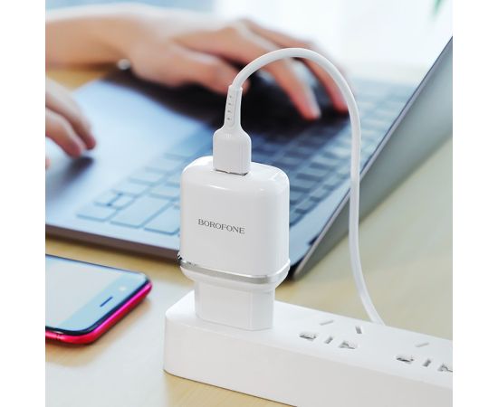 Адаптер Сетевой с кабелем Borofone BA36A High QC3.0 USB 3A/18W (USB/Micro USB) (white) (133679)