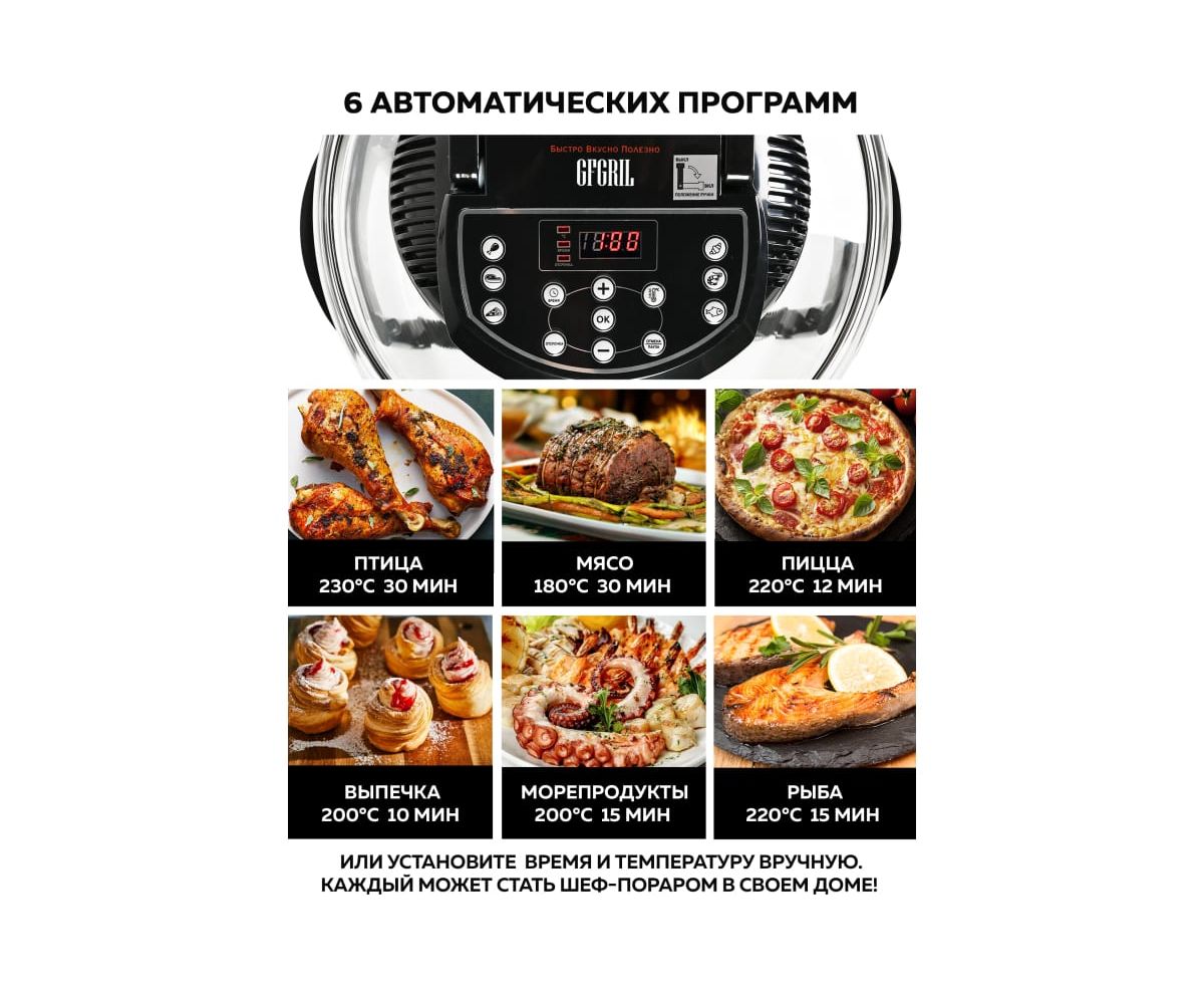 Аэрогриль GFGRIL 12л + 5л GFA-GL17D - это современный многофункциональный и простой в управлении бытовой прибор.