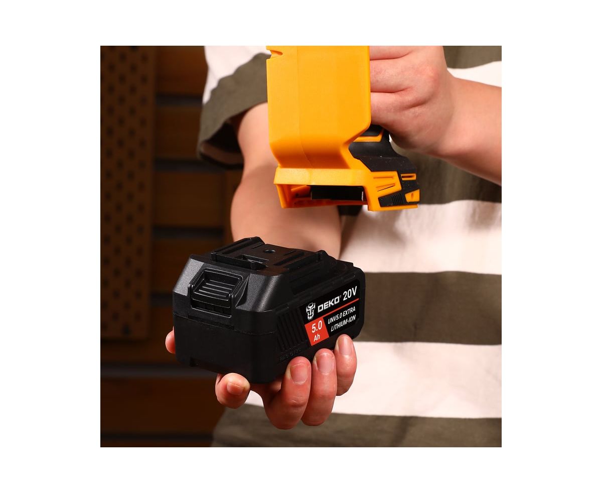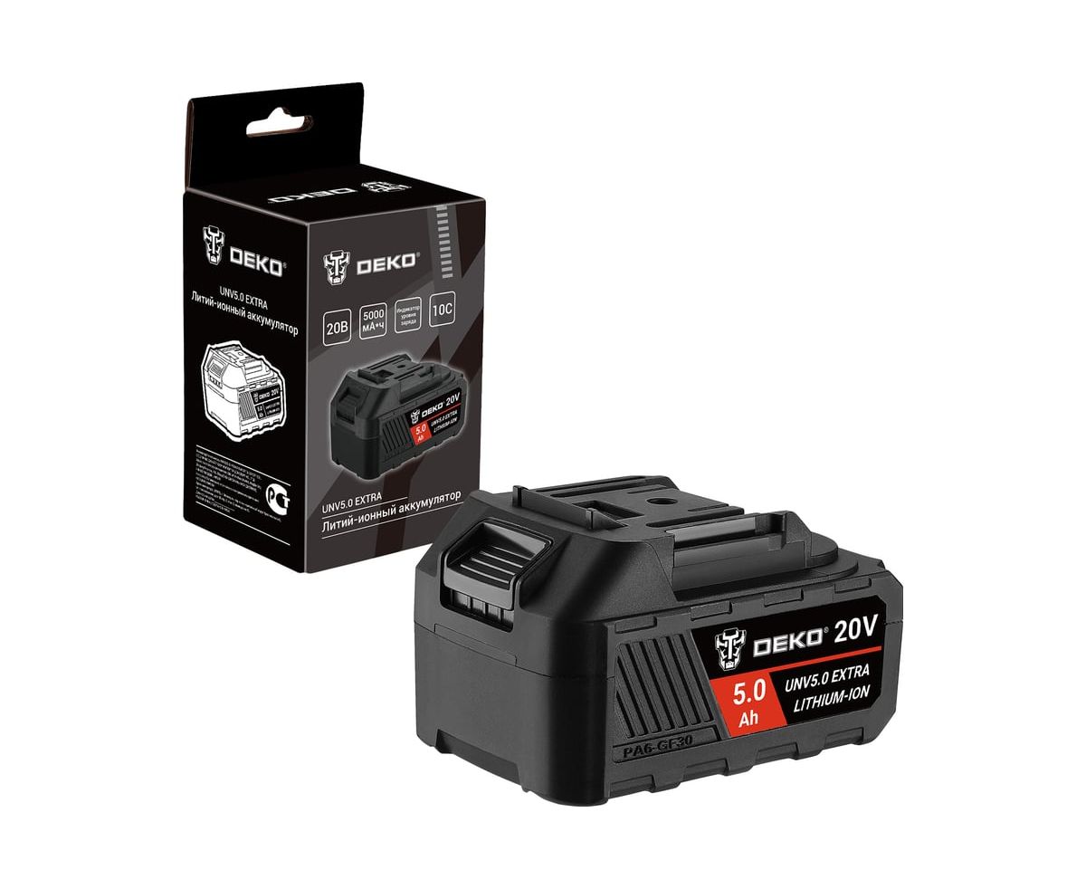 Аккумулятор DEKO UNV5.0 EXTRA применяется для питания электроинструмента DEKO с напряжением 20 В.