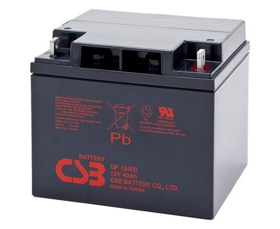 АКБ для ИБП 12В 40Ач CSB GP12400, 160W/cell, 480 Whr, 12.65 кг, (ШхГхВ) 197х165х170,4 мм (170,4 с клеммами)
