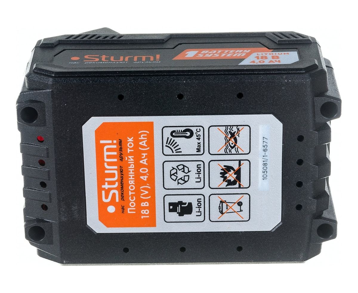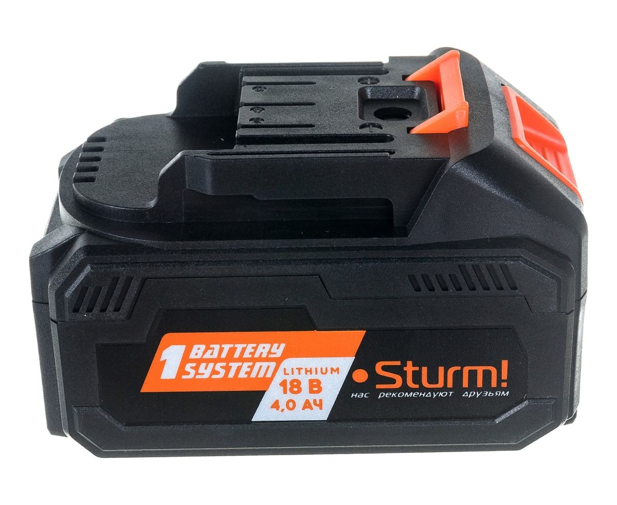 Аккумулятор 1BatterySystem (18 В; 4 Ач) Sturm SBP1804 - универсальная аккумуляторная система. Подходит ко всей линейке аккумуляторного инструмента Sturm! с данным логотипом.