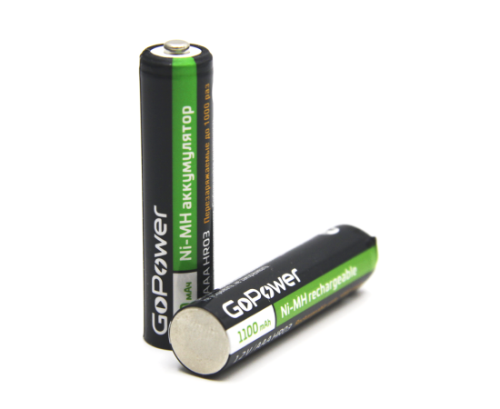 Ni-MH аккумулятор размера ААА/НR03 емкостью 1100мАч. Если вы часто покупаете батарейки, переходите на Ni-MH аккумуляторы GoPower! Ni-MH аккумуляторы GoPower перезаряжаемы до 1000 раз и заменят батарейки во всех современных устройствах, они сэкономят деньги и не навредят окружающей среде. Производятся по улучшенной технологии с использованием премиальных компонентов, что гарантирует продолжительный срок службы 1000 циклов и сниженный саморазряд.