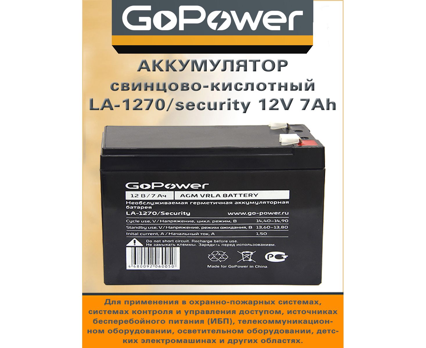 Свинцово-кислотные аккумуляторные батареи GoPower LA-1270/security 12V 7Ah