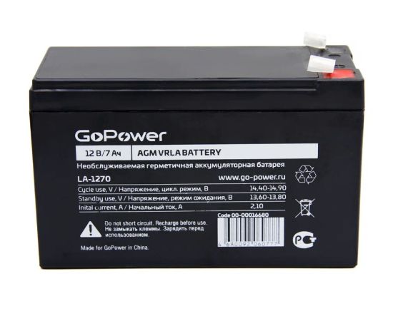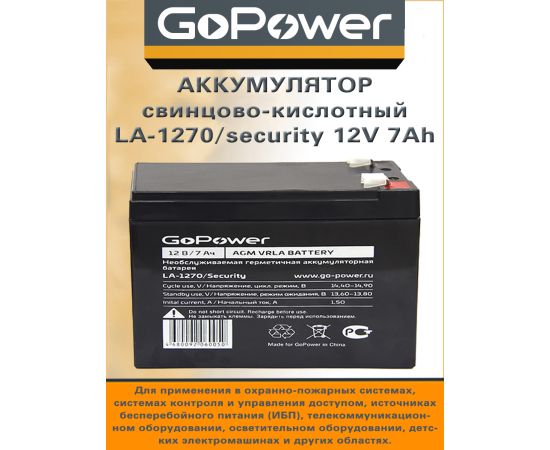 Аккумулятор свинцово-кислотный GoPower LA-1270/security 12V 7Ah