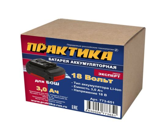 Аккумулятор ПРАКТИКА 773-651 для BOSCH 18В, 3.0Ач, Li-ION, в коробке