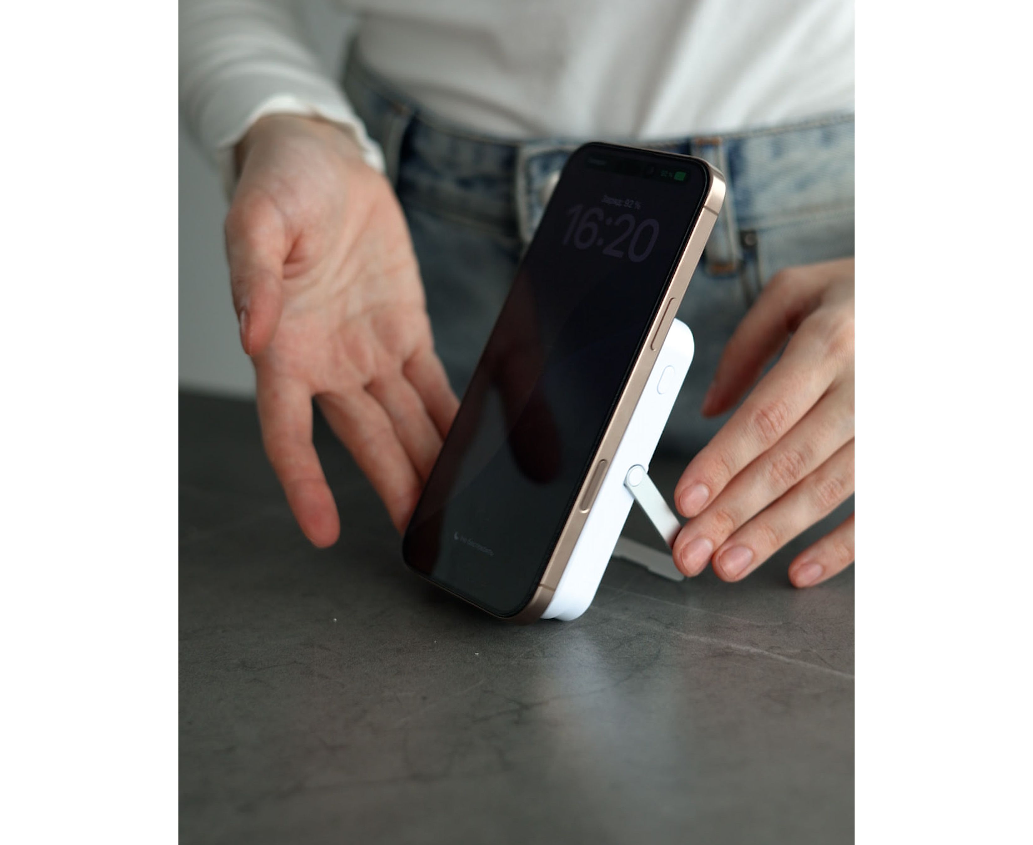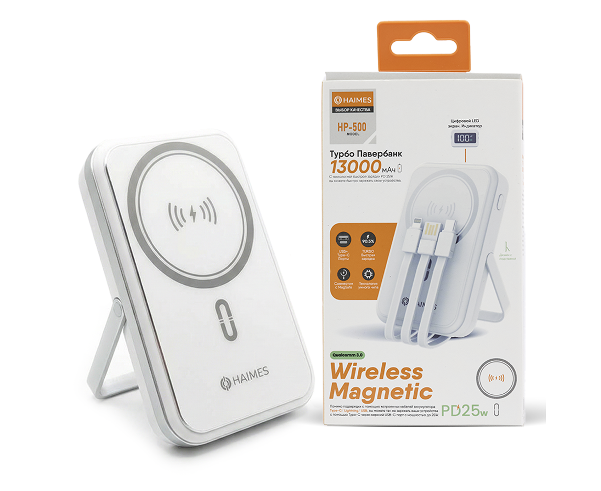 Аккумулятор внешний резервный, быстрая зарядка 25W, 13000 Mah, HAIMES с беспроводной зарядкой и подставкой, белый