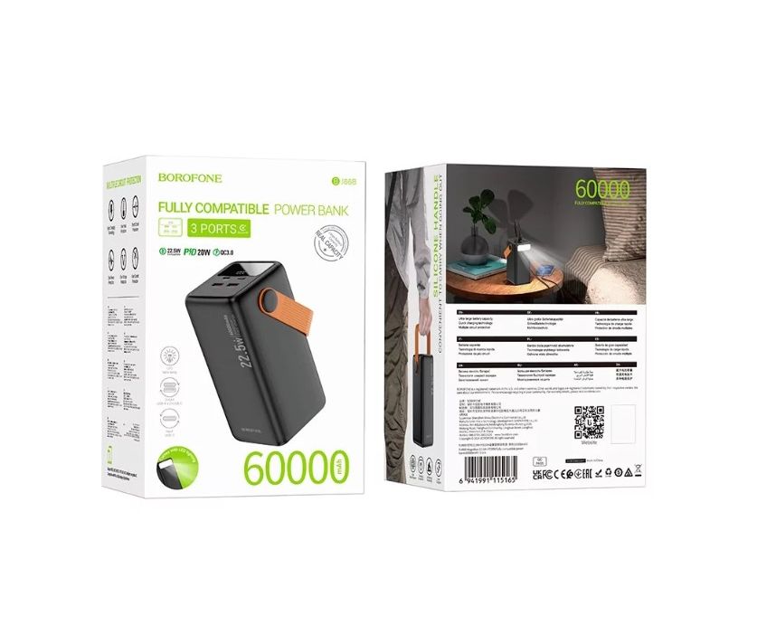 Borofone BJ66B 60000 мАч 22,5 Вт + PD20 Вт полностью совместимый мобильный источник питания (литий-полимерный).