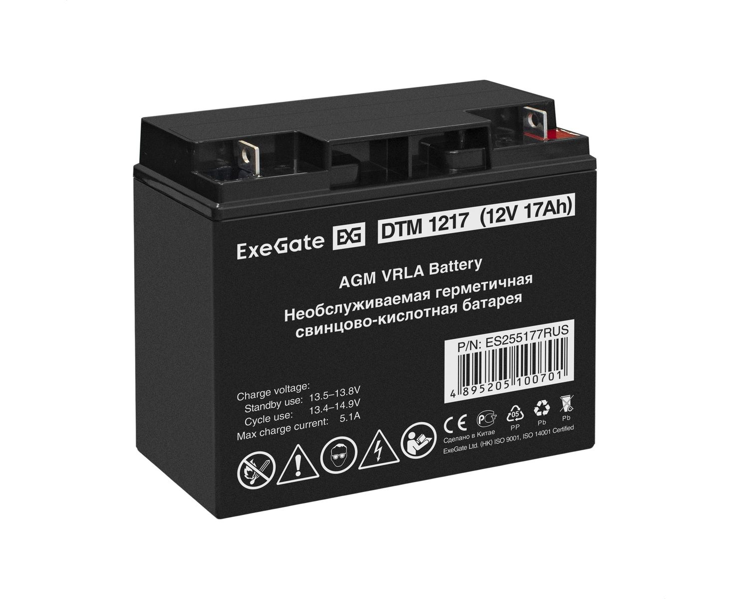 Аккумуляторная батарея ExeGate DTM 1217 (12V 17Ah, клеммы F3 (болт М5 с гайкой) 255177