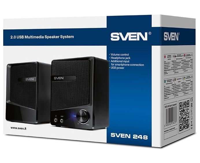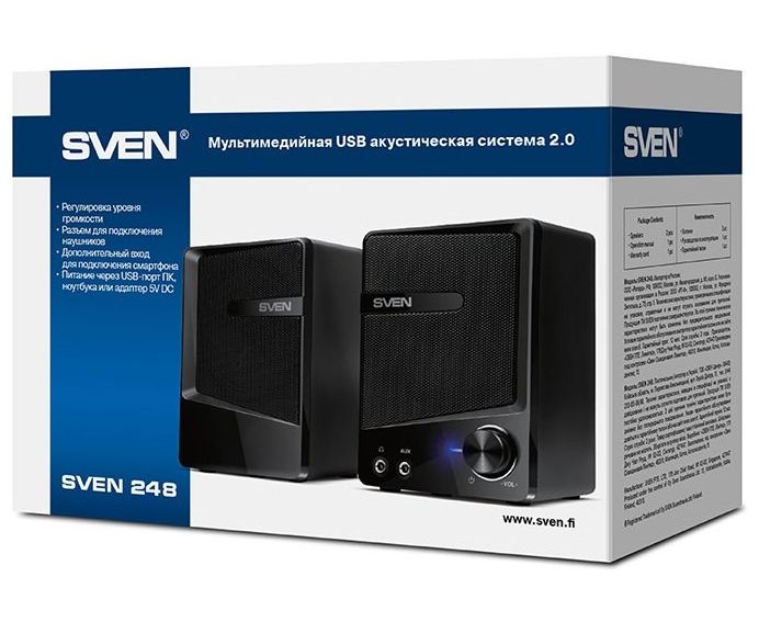 Акустическая система 2.0 SVEN 248, мощность 2х3 Вт(RMS), USB, черный