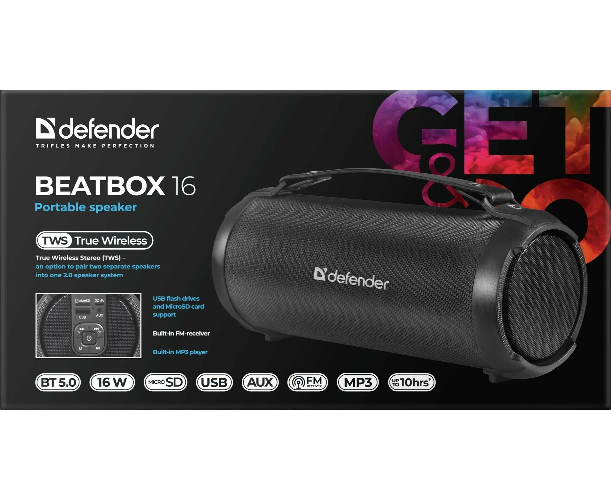 Портативная колонка DEFENDER Beatbox 16 16Вт, BT/FM/TF/USB/AUX/TWS 65216