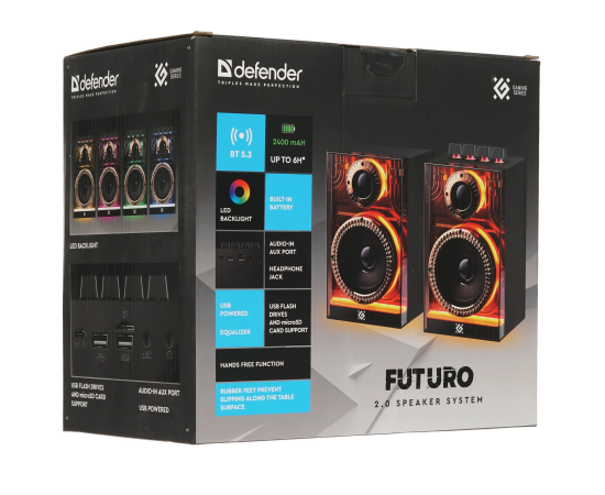Акустическая система 2.0 DEFENDER Futuro 20 Вт, BT/USB/TF/AUX/2400мА*ч 65087