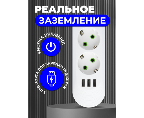 Предлагаем Вам приобрести незаменимый и полезный предмет в любом доме – удлинитель. Он обеспечивает удобство использования электроприборами. Благодаря 3 розеткам Вы можете подключить три электроприбора в сетевой фильтр и использовать их одновременно. Максимальная суммарная мощность подключаемых устройств не должна превышать 2,5кВт. Это достаточно для подключения различных устройств, таких как компьютеры, мониторы, зарядные устройства и другие электроприборы. Встроенные USB-порты позволяют заряжать и подключать мобильные устройства, планшеты, наушники и другие гаджеты без необходимости использовать дополнительные блоки питания (зарядные устройства) Стильный, современный дизайн фильтра обеспечивает удобство использования и экономию пространства. У удлинителя есть отверстия для крепления на стену как в вертикальном, так и в горизонтальном положении. Длина провода 2 метра. Мощность 2500Вт. Корпус выполнен из огнестойкого поликарбоната. Индикатор питания встроен в кнопку включения питания. Максимальный допустимый ток 10 А.