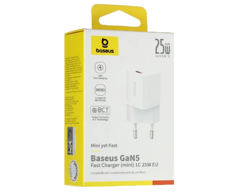 Сетевое зарядное устройство Baseus GaN5 mini USB-C - это современное и функциональное решение для зарядки ваших устройств. Благодаря использованию технологии GaN5, оно обеспечивает быструю и безопасную зарядку с мощностью до 25 Вт.