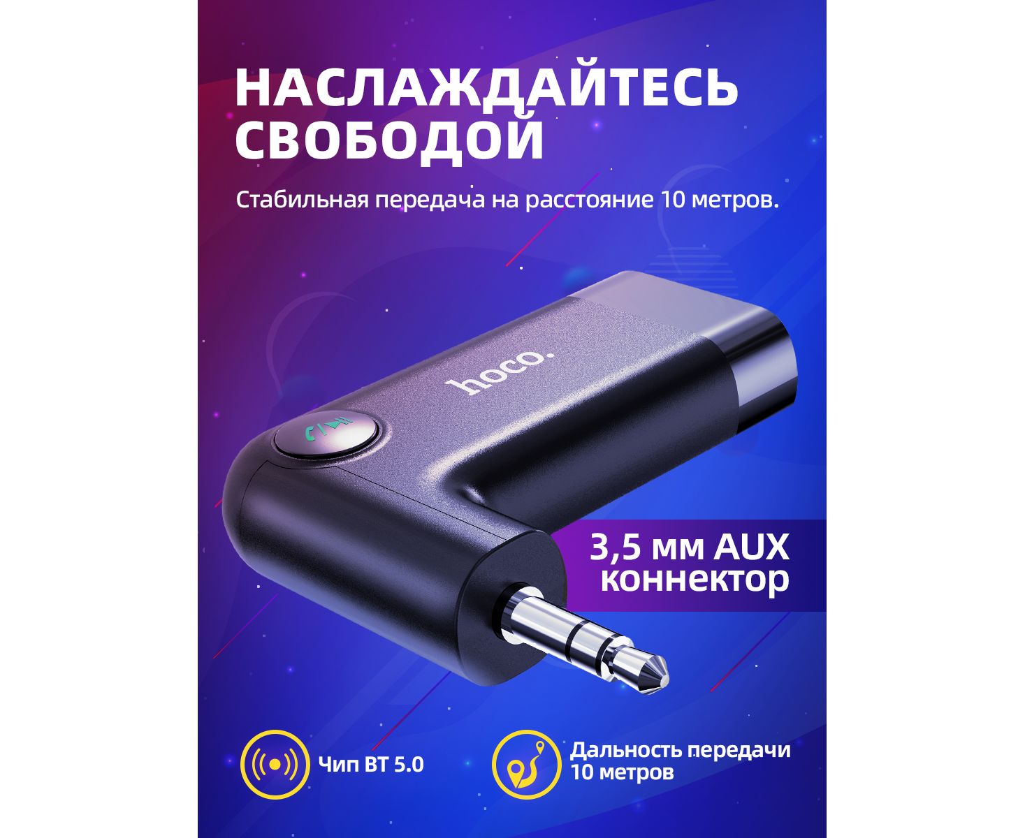 АЗУ Bluetooth FM-Трансмиттер HOCO E53 Dawn sound AUX адаптер
