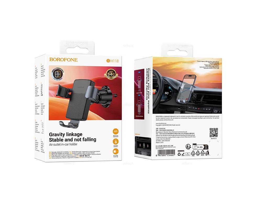 Автомобильный держатель BOROFONE BH118 Refined gravity car holder(air outlet) (черно-серый)
