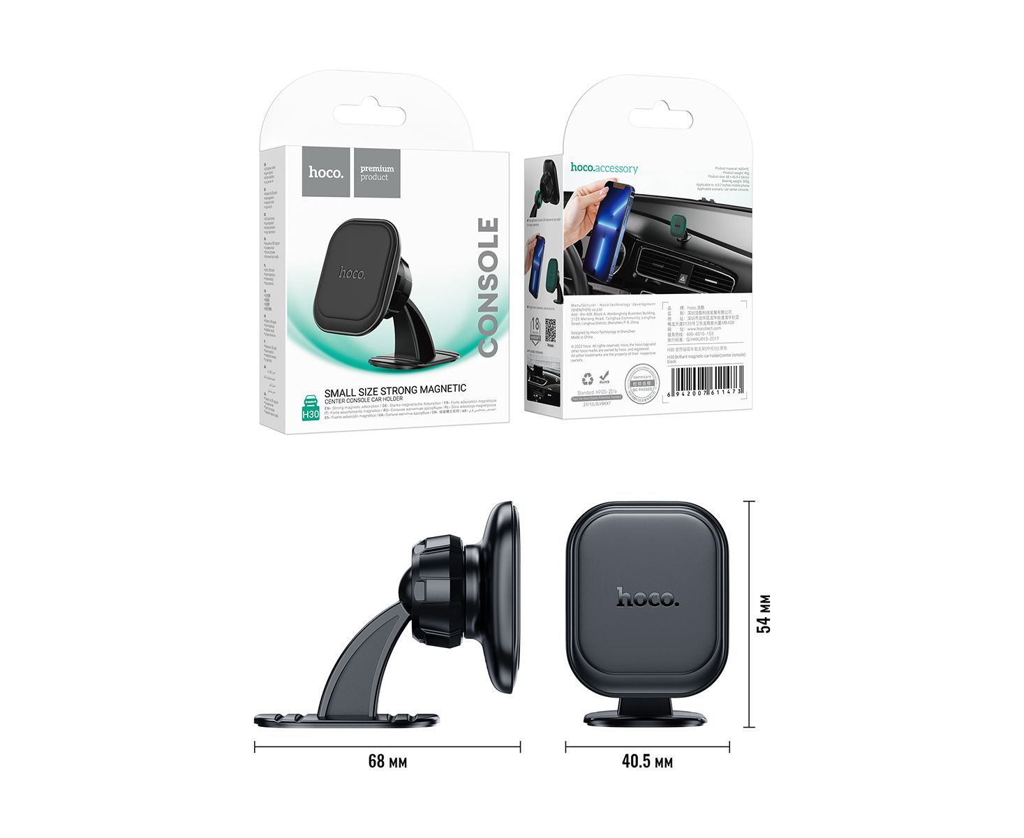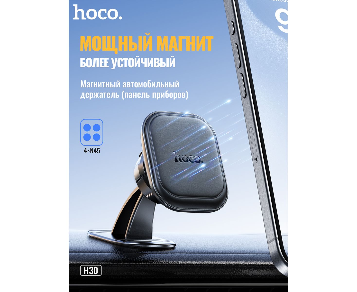 Автомобильный держатель HOCO H30 Brilliant magnetic car holder(center console) (черный)