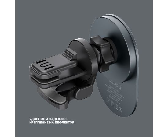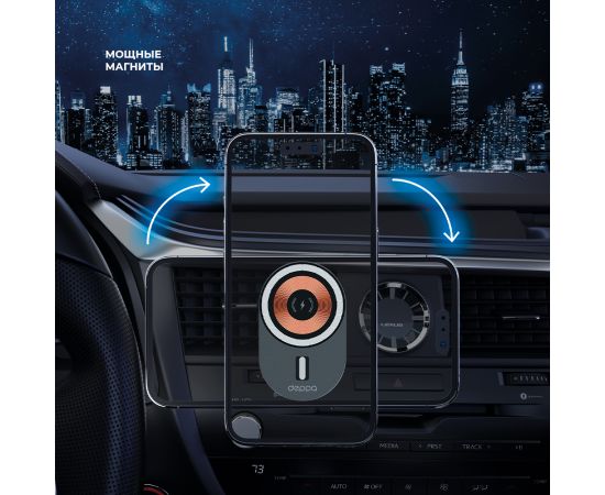 Мощный магнитный держатель с функцией беспроводной зарядки MagSafe Crystal Slim QI позволит вам удобно и надежно зафиксировать ваш смартфон. Если вам потребуется перевернуть телефон, вы сможете это сделать одним легким движением руки. Беспроводная зарядка мощностью до 15Вт зарядит ваш смартфон быстро и безопасно. Удобное и надежное крепление-прищепка легко фиксируется практически на дефлекторе.
