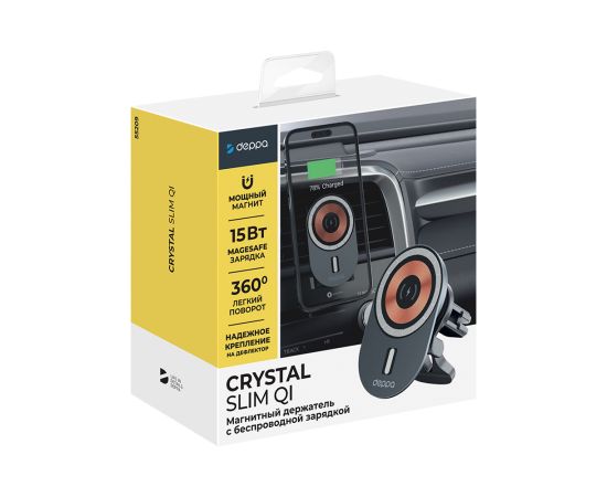 Автомобильный держатель MagSafe Crystal Slim QI, серый, Deppa, 55209