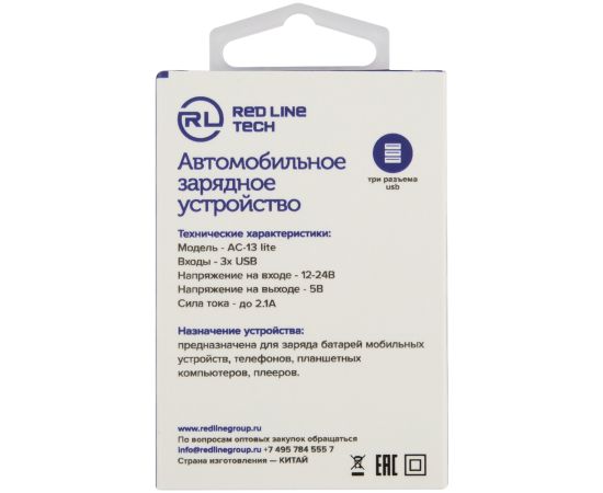 АЗУ Red Line Tech 3 USB (модель АС-13 lite 1A), черный