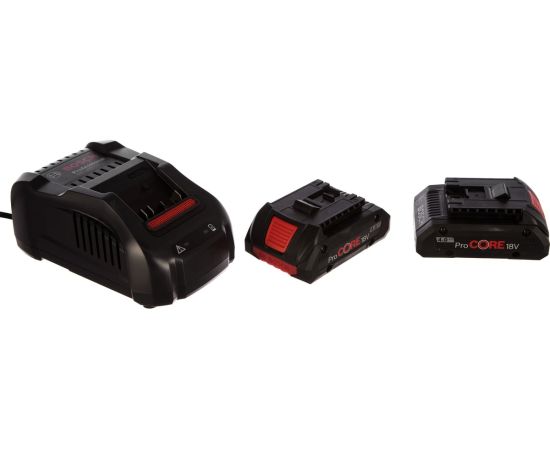 Набор аккумуляторов Li-Ion ProCORE 4 Ач, 18В + ЗУ GAL 1880 CV Professional Bosch 1600A016GF позволяет производить работы в сервисах и на стройках без простоя.