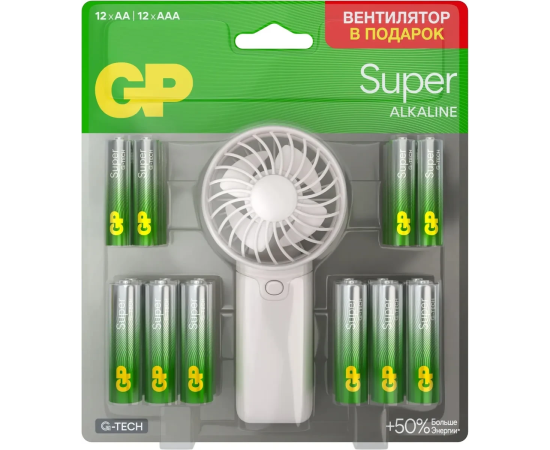 Батарея GP Super 15A/24A/FANWETA21-2CRSBC24 AA/AAA (Вентилятор в подарок) (24шт) блистер