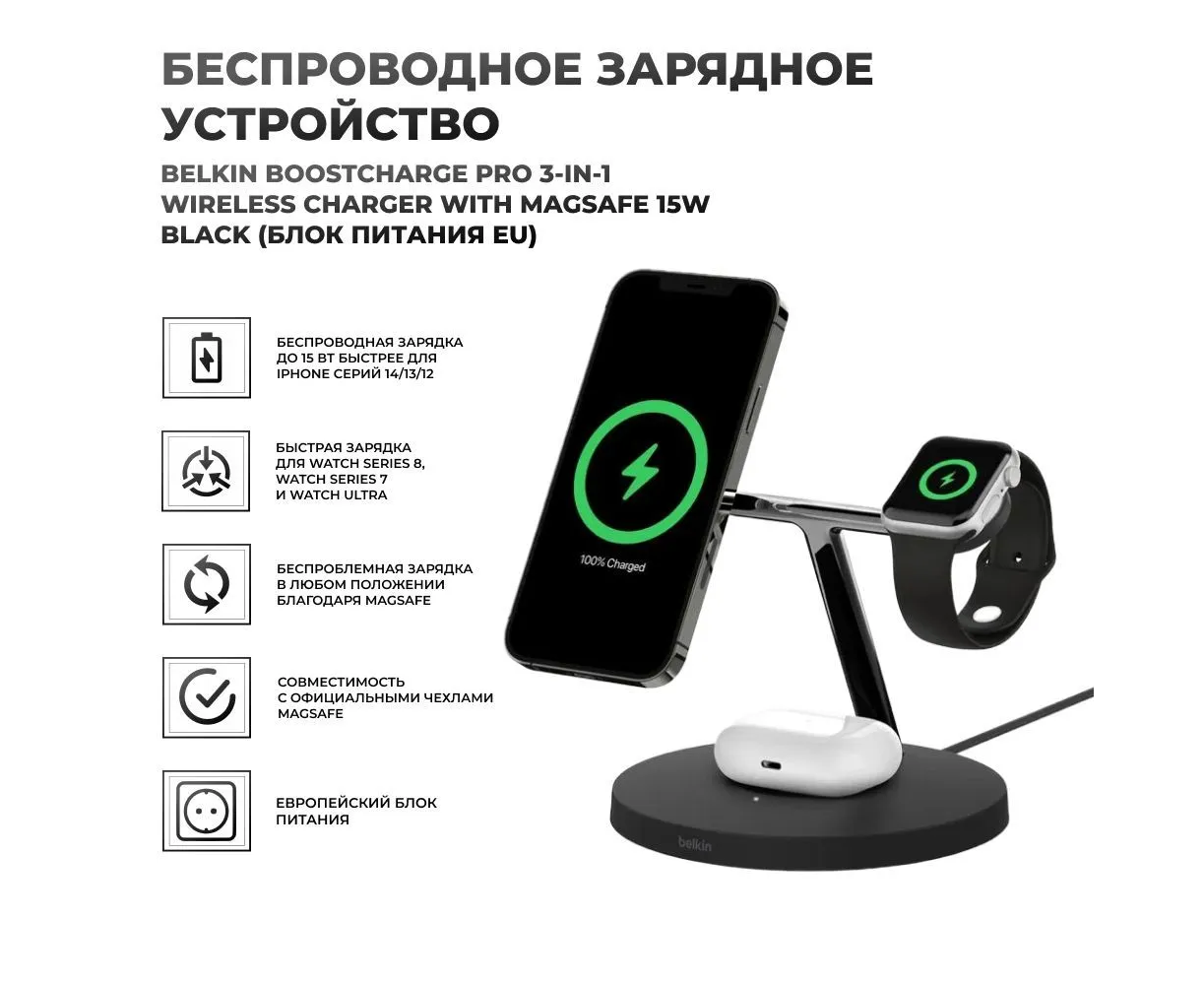 Belkin BoostCharge PRO MagSafe 3in1 Charger Black (блок питания EU)