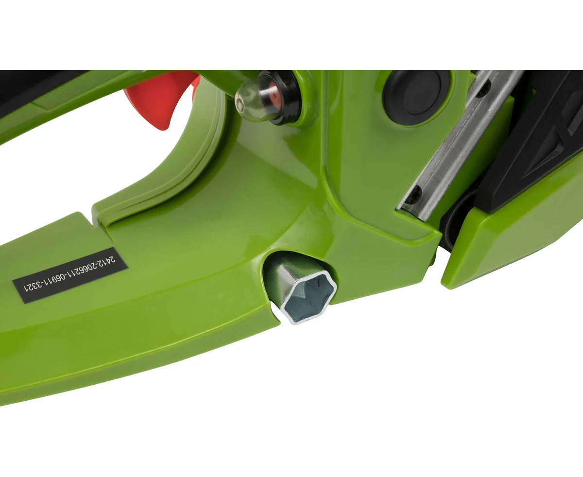 - Автоматическая система смазки цепи обеспечивает равномерную подачу масла для безопасной и эффективной работы.