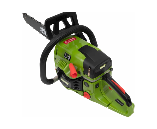 Двухтактный двигатель гарантирует стабильную работу, а длина шины в 45 см позволяет легко справляться с крупными деревьями. Пила оснащена системой легкого запуска и праймером, что упрощает процесс запуска даже в холодную погоду. Максимальная скорость вращения цепи достигает 21 м/с, что способствует быстрому и точному распилу.