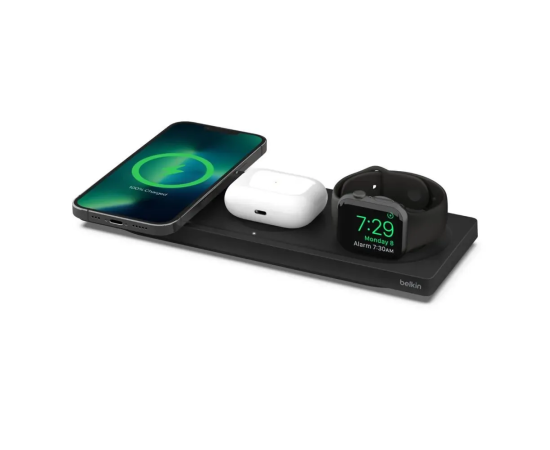 Беспроводное зарядное устройство Belkin MagSafe 3-в-1 черного цвета (блок питания EU)