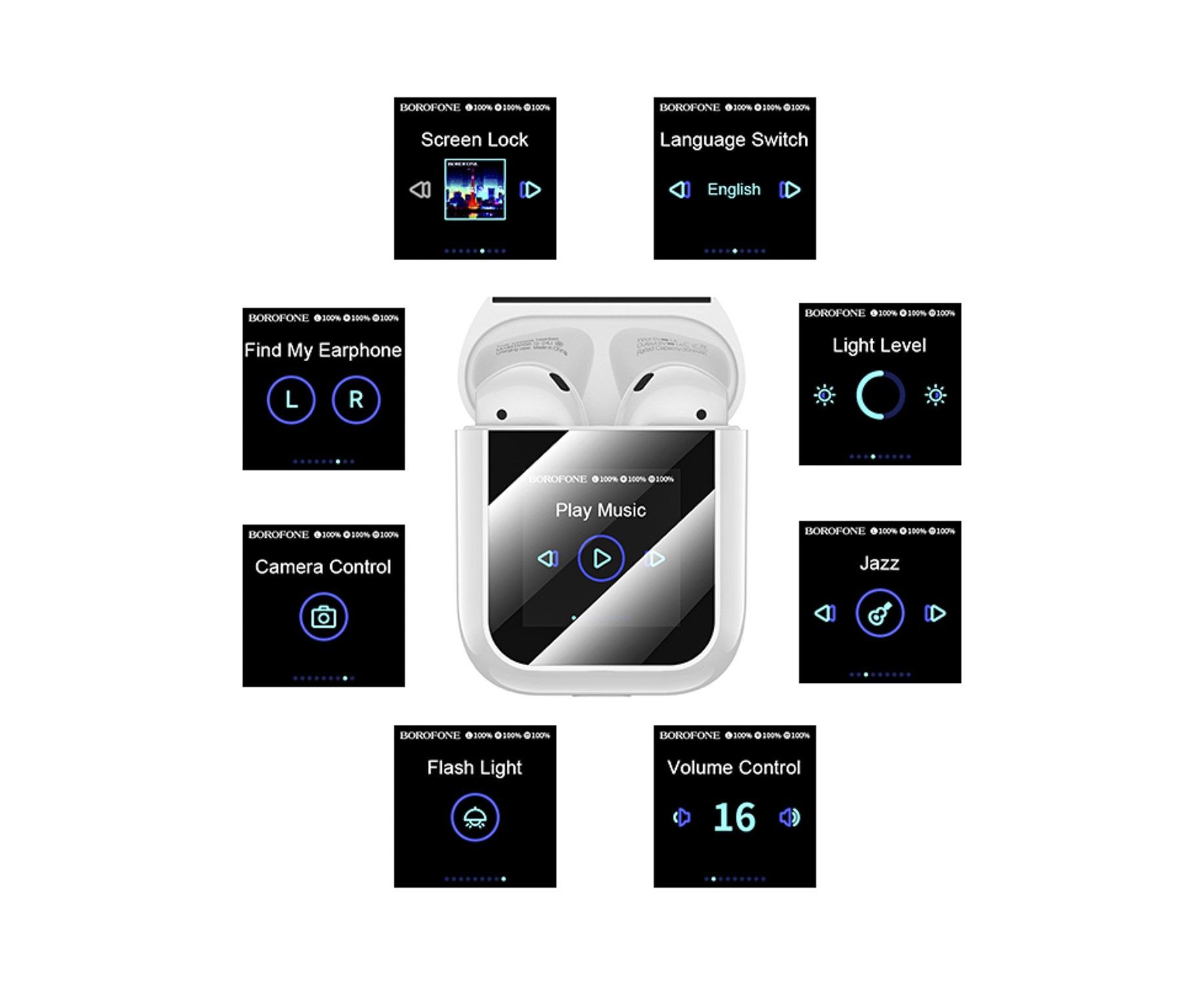 Беспроводные Bluetooth-наушники Borofone TWS BW86 Brocade с экраном (white) (239677)