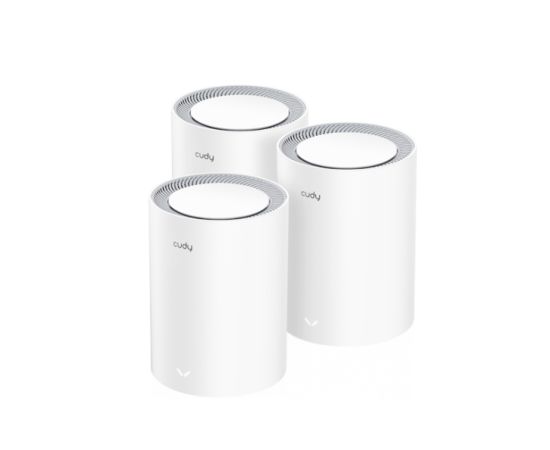 Модель Cudy M1800 (3-Pack) имеет в комплекте 3 шт роутеров Cudy М1800 с гигабитными портами Ethernet стандарта Wi-Fi 6 Mesh AХ1800.