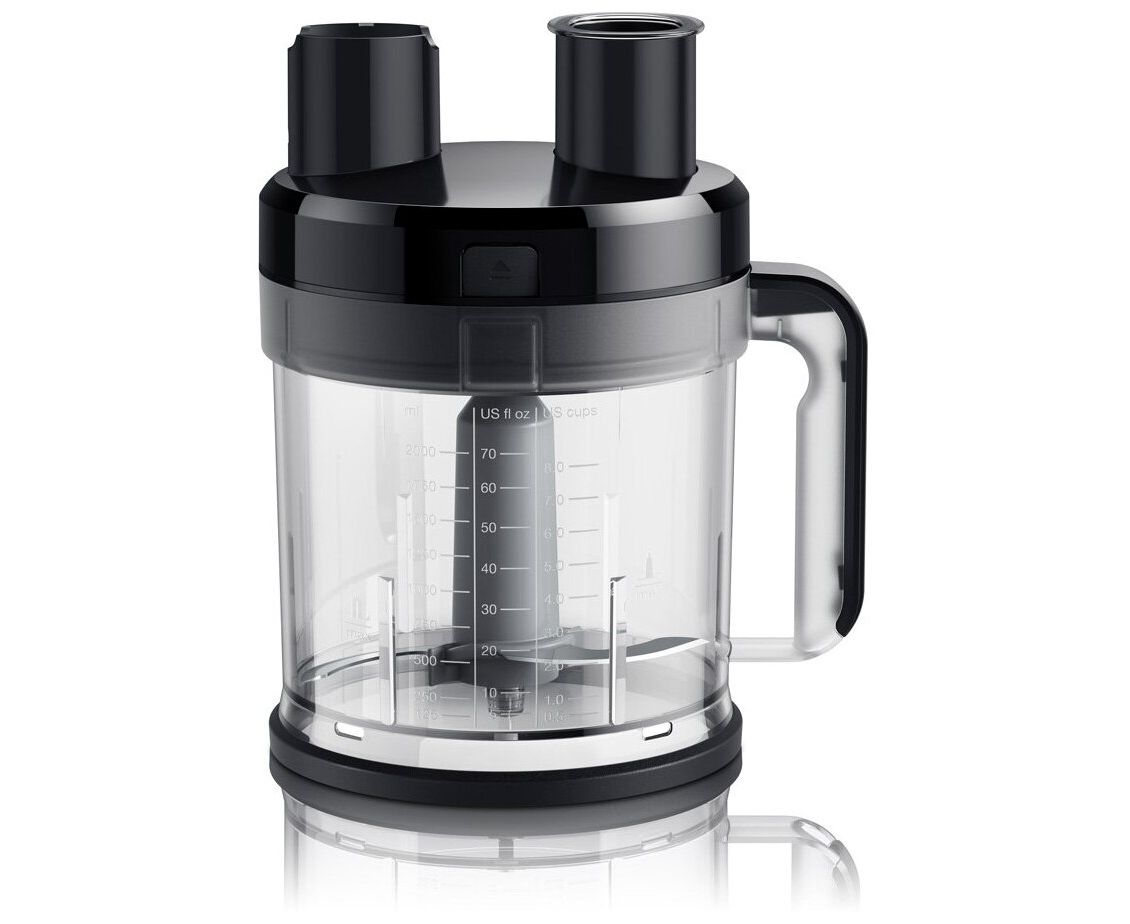 Система EasyClick, управление Smart Speed, технологии ActiveBlade и PowerBell Plus; в комплекте 13 насадок, насадки можно мыть в посудомоечной машине, объем комбайна 2 л, прорезиненная ручка