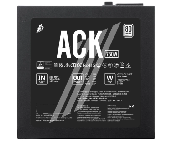 Блок питания 1STPLAYER ACK (HA-750AC2) 750W Black / ATX 2.4, APFC, 80 Plus Standard, Double Forward, 140mm fan, non-modular