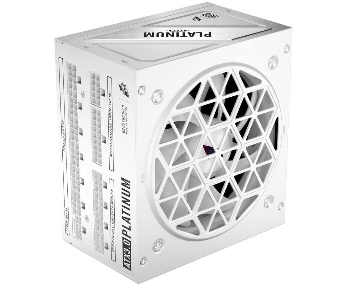 Блок питания 1STPLAYER NGDP Platinum 1000W White (HA-1000BA3-WH) / ATX3.0, APFC, 80 PLUS Platinum, LLC+DC-DC, 120mm fan, full modular