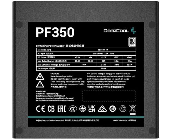 Блок питания Deepcool PF350 80+ ATX 2.4 350W, PWM 120mm fan, 80 Plus, Active PFC RET
