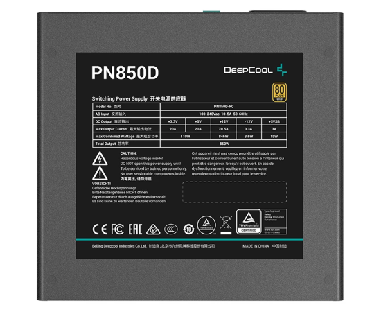 Блок питания Deepcool PN850D (ATX 3.1, 850W, PWM 120mm fan, Active PFC, 80+ Gold, Gen5 PCIe) RET