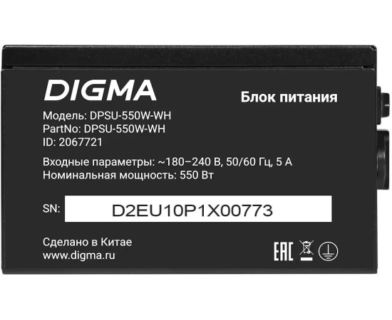 Блок питания Digma DPSU-550W-WH 80 Plus White ATX 550W (20+4pin) APFC 120mm fan 6xSATA RTL