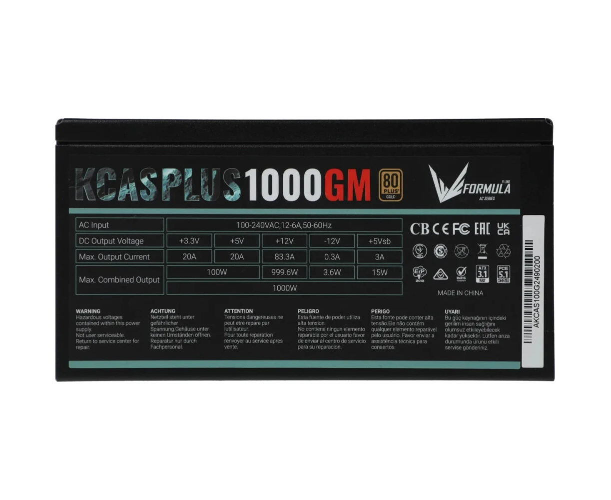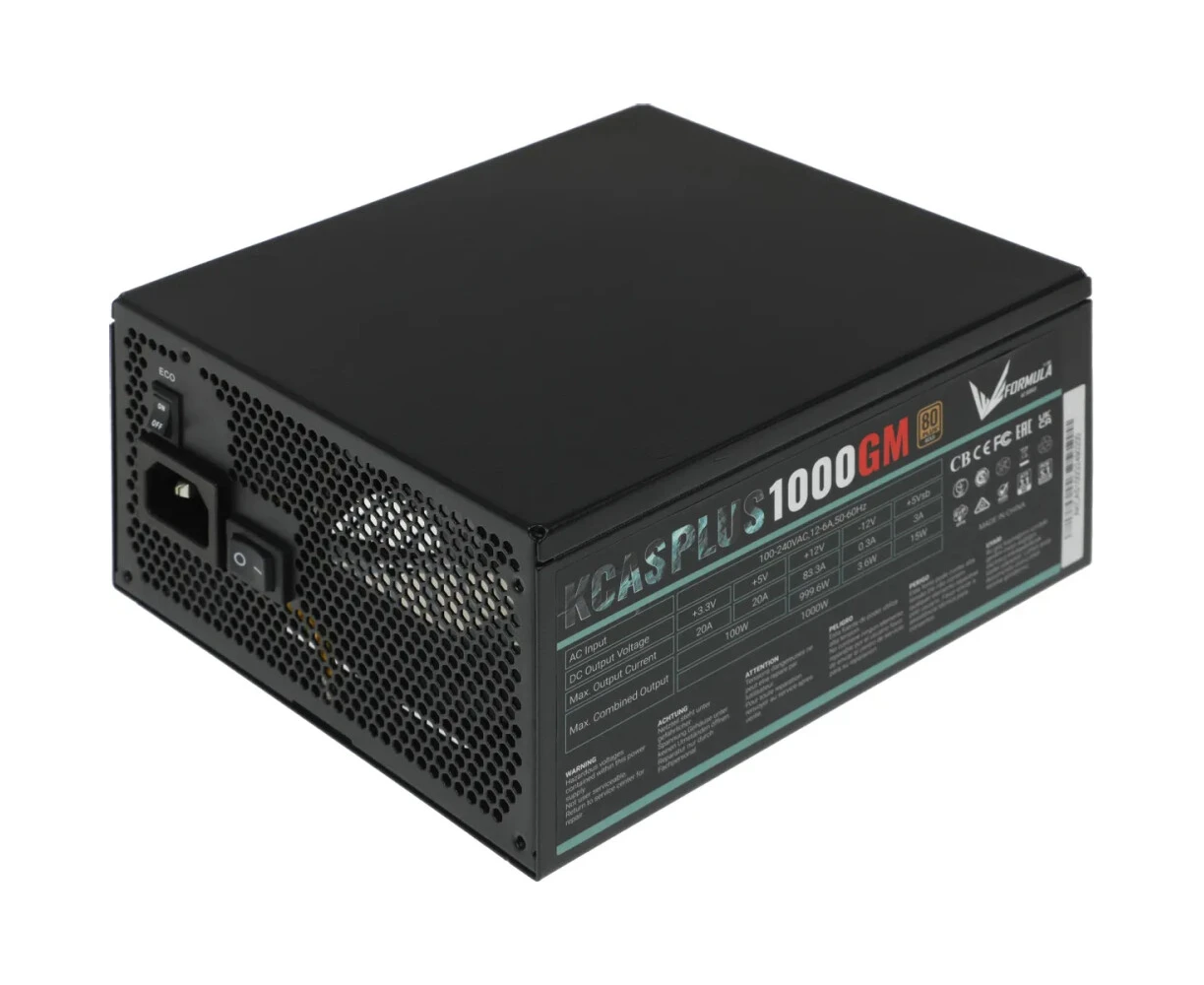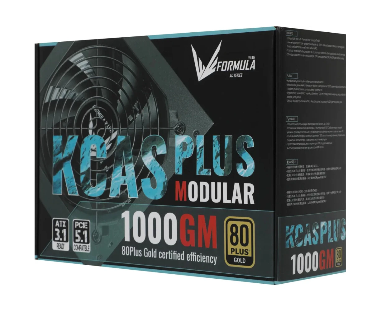Блок питания Formula V Line KCAS Plus 1000GM, 1000W, ATX3.1/PCIe5.1, APFC, 80+ Gold, 14cm Fan, Full Modular