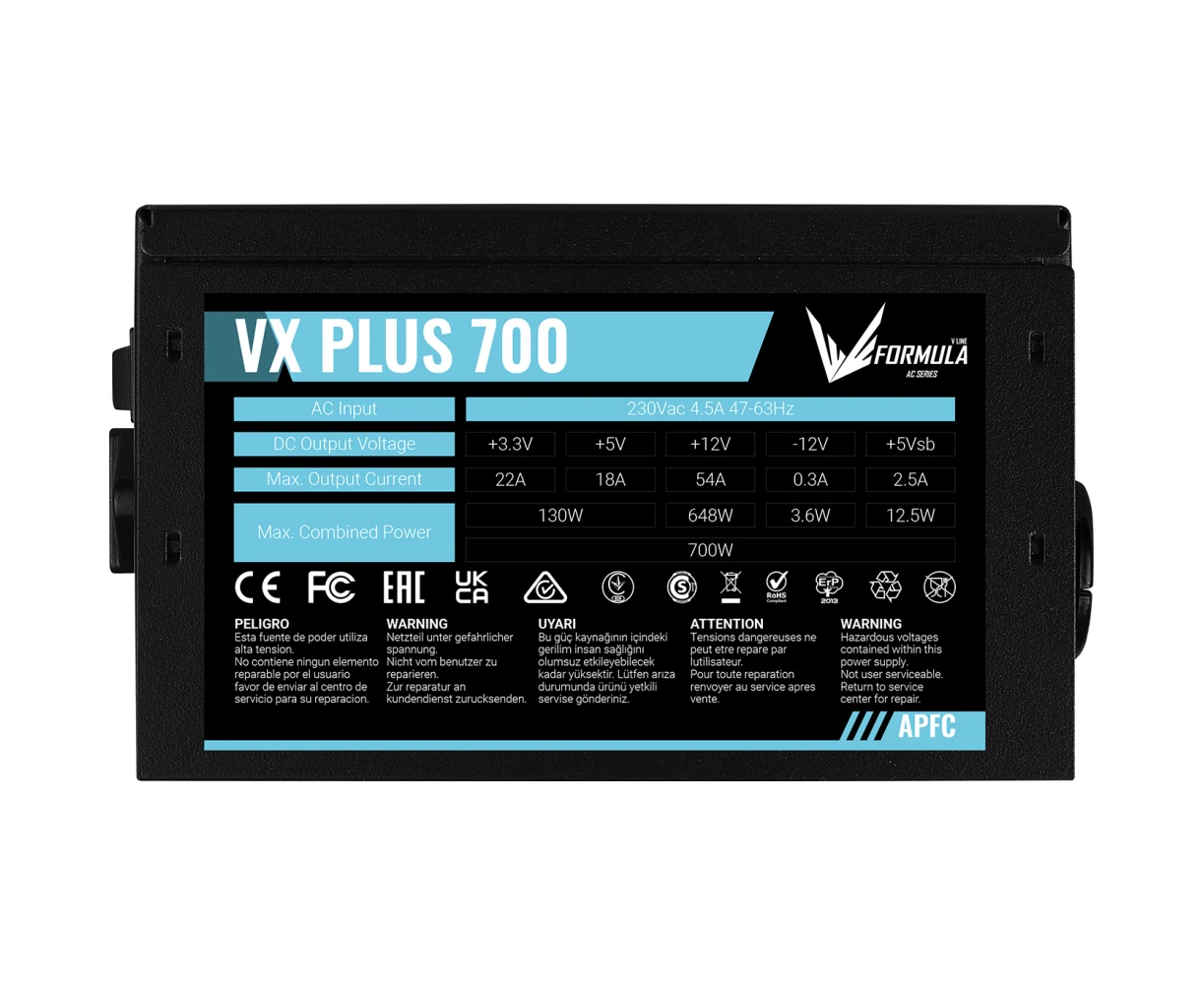 Блок питания Formula VX Plus 700, 700W, Ret, ATX v2.3, APFC, 20+4P, 4+4P, 2xPCIe 6+2P, 6xSATA, 3xPATA, 1xFDD
