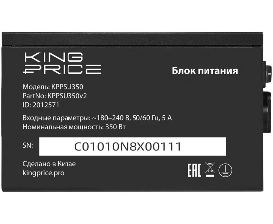 Блок питания KingPrice KPPSU350V2 ATX 350W (20+4pin) 120mm fan 2xSATA RTL