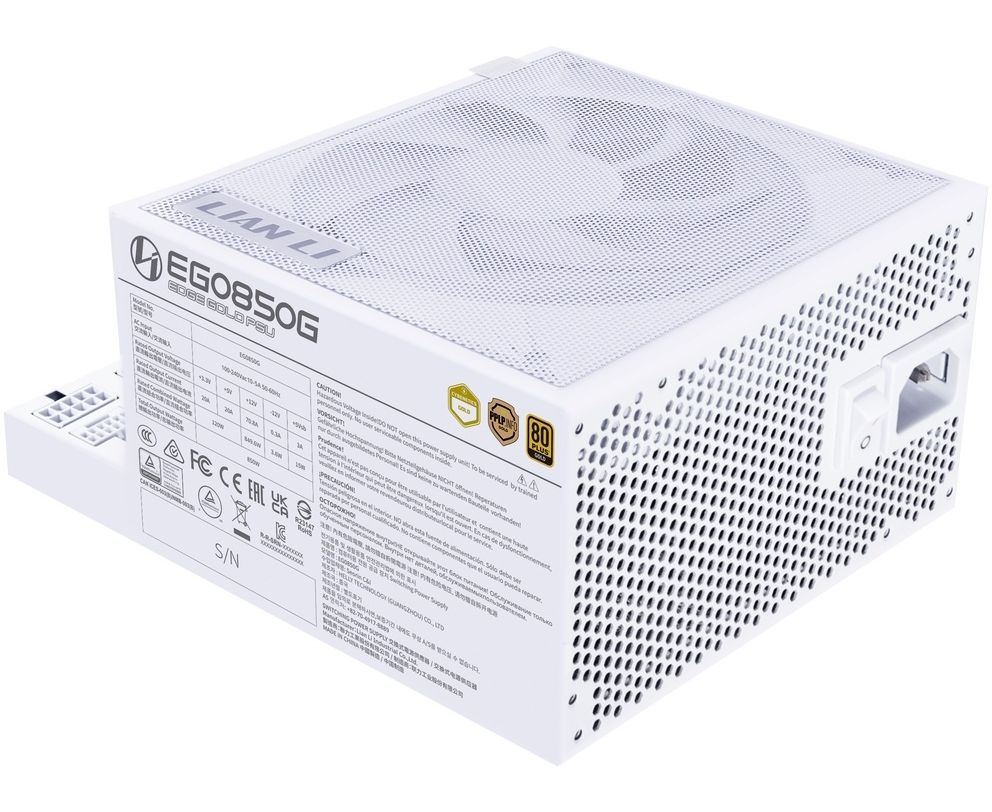 Блок питания Lian Li EG0850G (G9P.EG0850G.W000.RU) / White / ATX 3.1, 850W, 80 Plus Gold, PCIe 5.1, APFC, 120mm FDB Fan, Fully Modular
