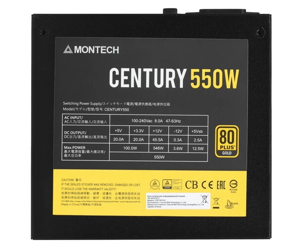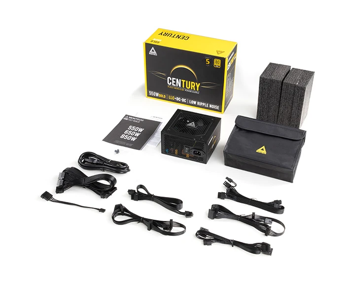 Блок питания Montech Century 550W / ATX 2.43, APFC, 80 Plus Gold, Full Bridge LLC, DC-DC, Japan caps, 120mm fan, full modular
