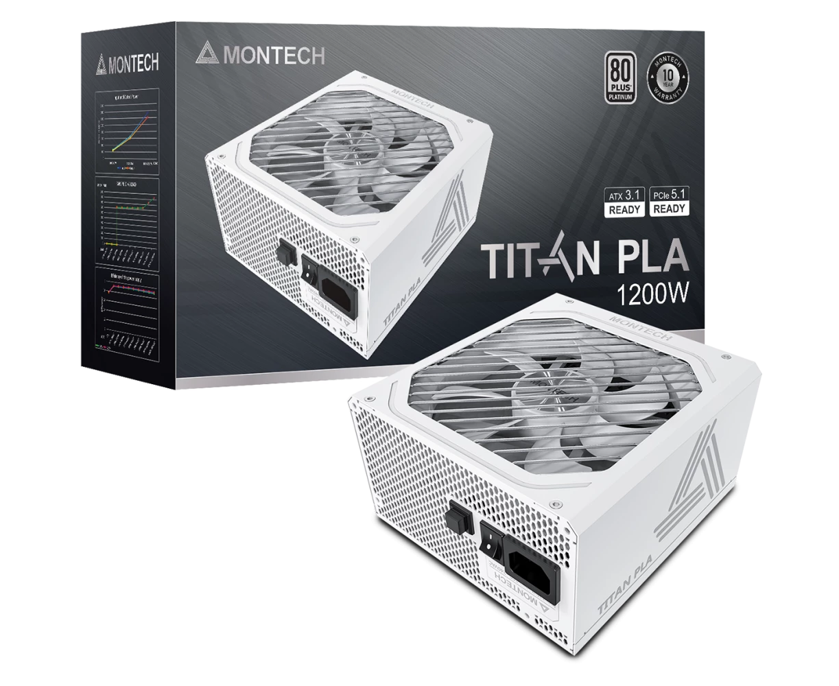 Блок питания Montech Titan PLA 1200W (TIX0126) / ATX 3.1, APFC, 80 Plus Platinum, Japan caps, 135mm fan, full modular