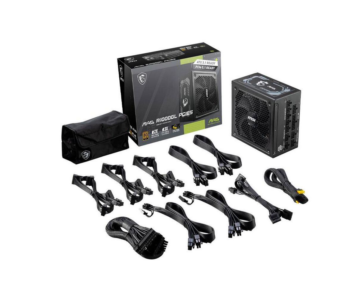 Блок питания MSI Mag A1000GL PCIE5, 1000W (306-7ZP9B11-CE0), 80+ Gold, полностью модульный, ATX 3.0, PCIE5, RTL