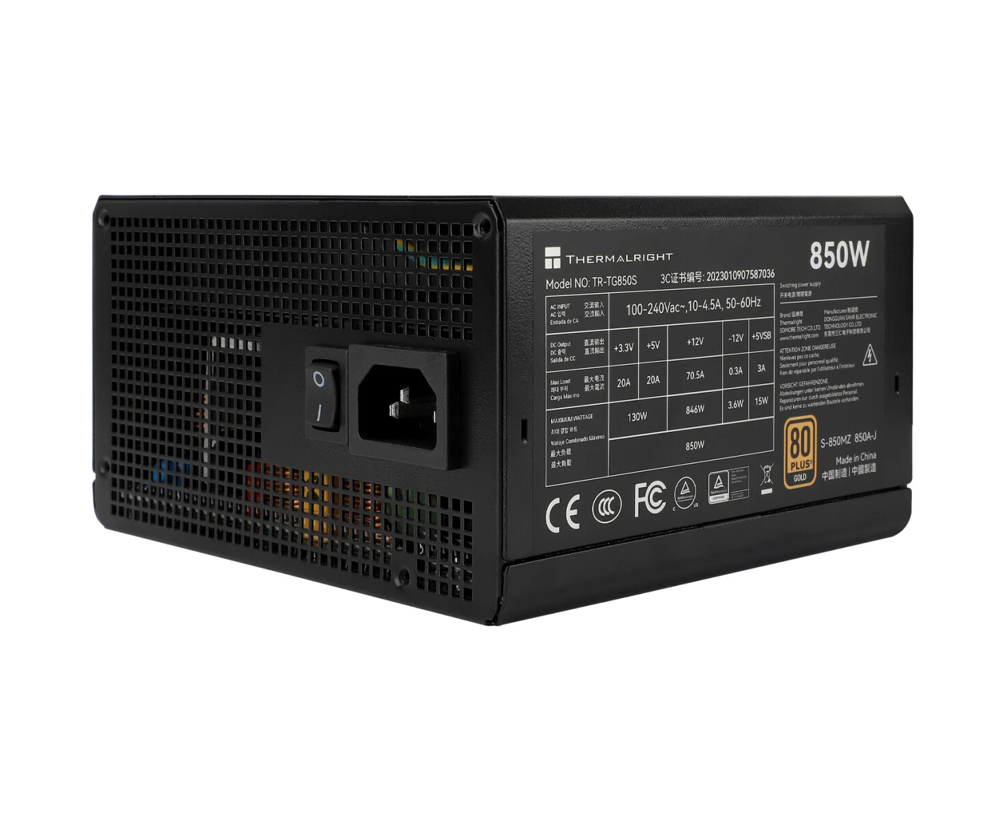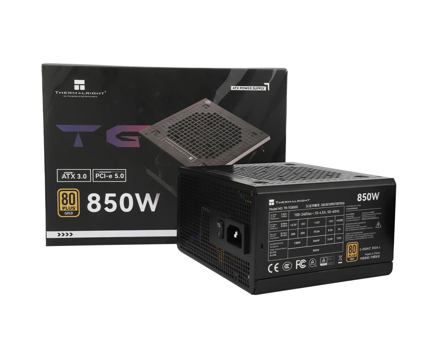 Блок питания Thermalright TR-TG850S 850W 80+ Gold (ATX, 3.0, PCIe 5.0, Non-modular, 1x24(20+4)pin, 1xCPU 8(4+4)pin, 2xPCIe*2 8(6+2))