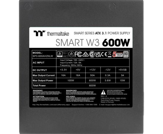 Блок питания Thermaltake Smart W3 600 (PS-SPW-0600NNFAWE-1)