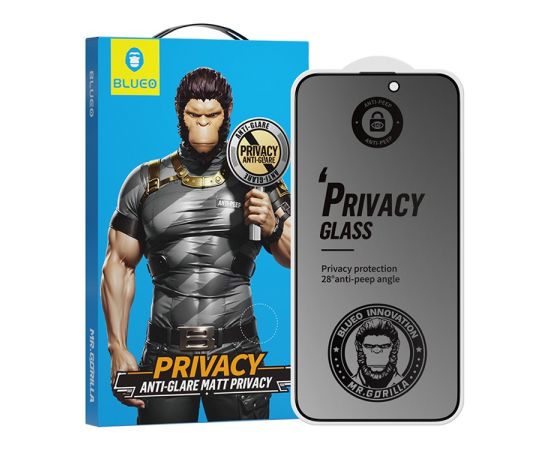 BlueO стекло для iPhone 15 Pro Max, Anti-peep Matte Black (приватное матовое)